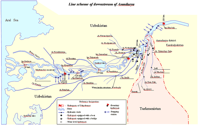 • Amu Darya River trunk from the beginning to Aral Sea as well as management and operation of interstate main canals with structures located in Amu Darya lower reaches downstream Tuyamuyun hydrounit.